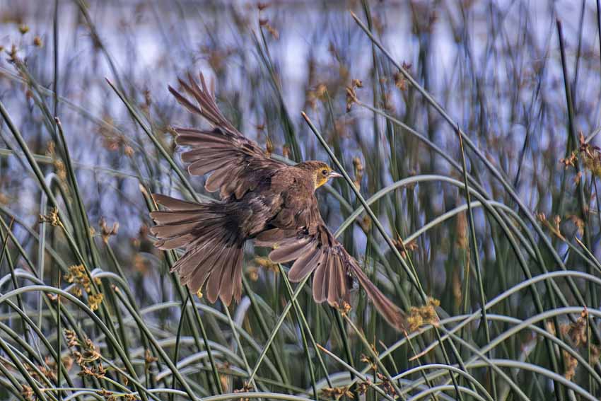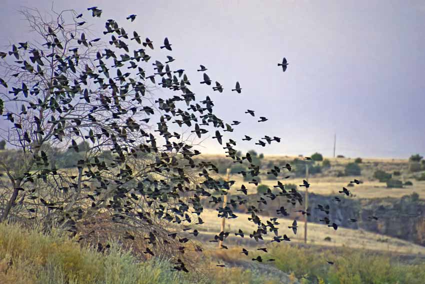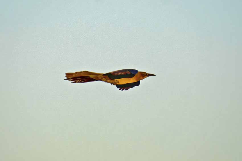 | Great-tailed grackle at last light. |