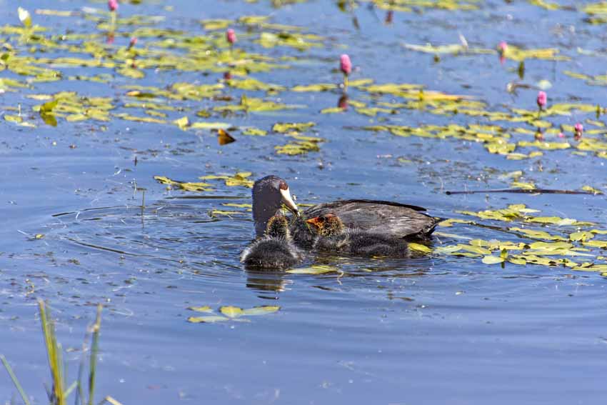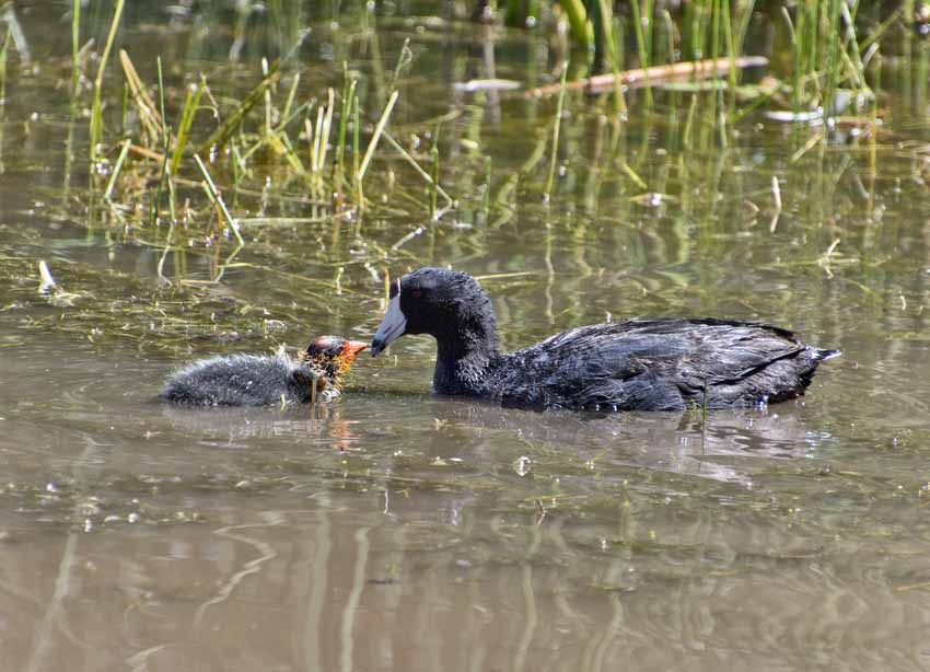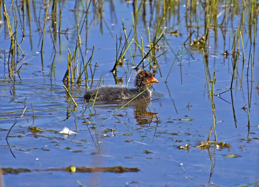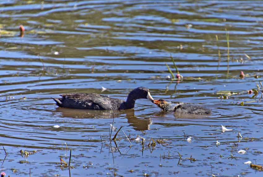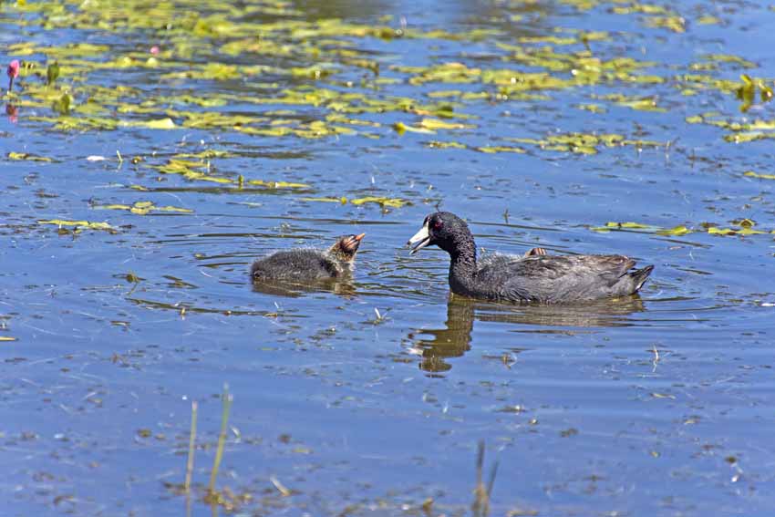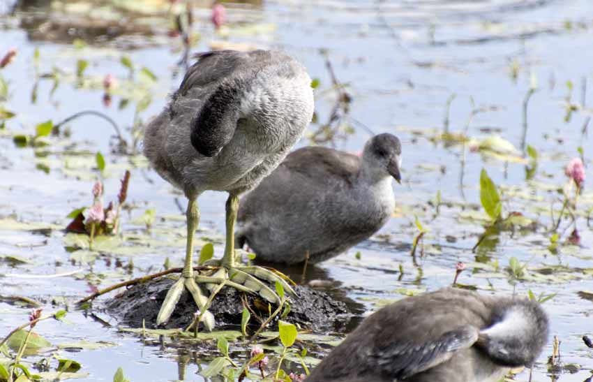 | The coot chicks are growing up. |
