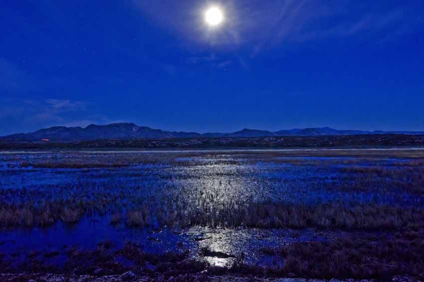 | The moon was looking west over one of the ponds and the picture below was east at first light. |