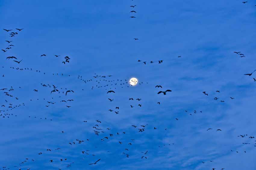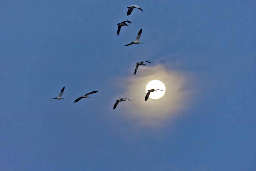 | It seemed like getting birds in the right position in relation to the moon was almost impossible. This one was pretty good. |