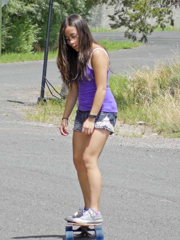 | Sam thought a long-board woud be good transportation around campus. |